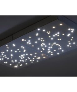 Uz Master-LED-Panel Universe, na stropu dnevne sobe može se dočarati iluzija savršenog zvjezdanog neba. Ploča se isporučuje s daljinskim upravljačem. Različitim postavkama može se upravljati pomoću daljinskog upravljača. Možete birati između dva različita načina rada. U načinu 1, panel emitira 700 lumena i toplu bijelu temperaturu boje od 3.000 Kelvina. U načinu 2, panel samo jako svijetli i stvara savršenu sliku zvjezdanog noćnog neba pri 70 lumena i temperaturi boje od 4.000 Kelvina. Panel je opremljena kabelom od 50 cm za spajanje na druga svjetla. Možete kombinovati sa dodatkom nastavka (art. 145722).