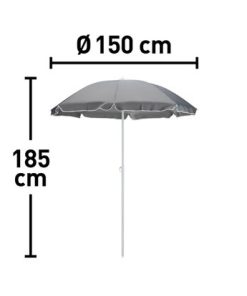 Suncobran Palmelo ima promjer od 150 cm i visinu od 185 cm i tako pruža ugodnu hladovinu za opuštajuće sate u vrućim danima. Zahvaljujući središnjem jarbolu, suncobran također može podnijeti vjetar. Izrađen je s presvlakom od 140 g poliestera u svijetlosivoj boji. Kip suncobrana i nosači izrađeni su od čelika. Ima praktičnu funkciju za lako otvaranje i zatvaranje. Suncobran za plažu impresionira svojstvima otpornim na vremenske prilike i jednostavnom njegom.